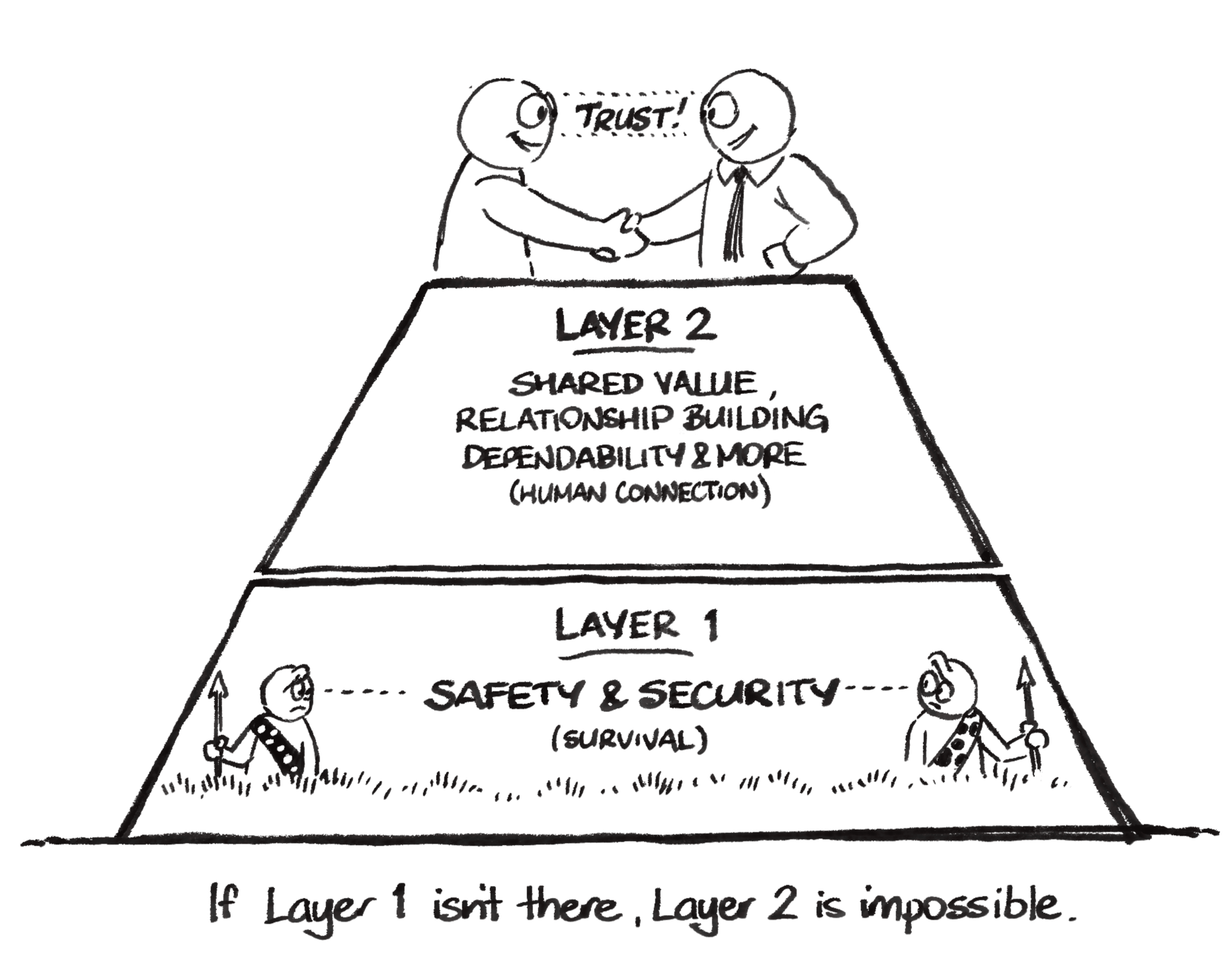Trust is two layered. Layer 1 is primal: “is it safe?” Without a definitive “yes,” a human brain will not progress to Layer 2. Without safety, no message, offer or value prop matters.