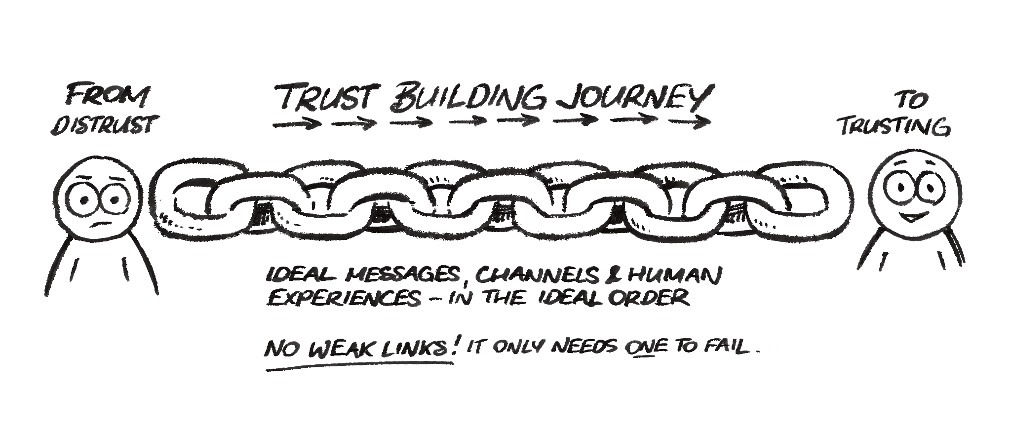 Trust is built via a chain of events. This requires strong chain links, in exactly the right order. One weak link and the whole thing breaks.