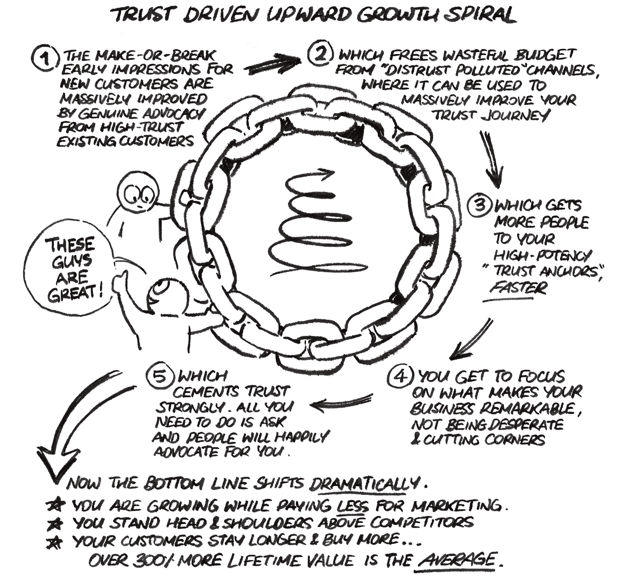 Now the magic happens. Major gains (growth, competitive advantage, revenue) only happen once your trust chain becomes a loop. Why? Because trust psychology has a unique power: trust attracts trust! In Stage 3 we harness this power.